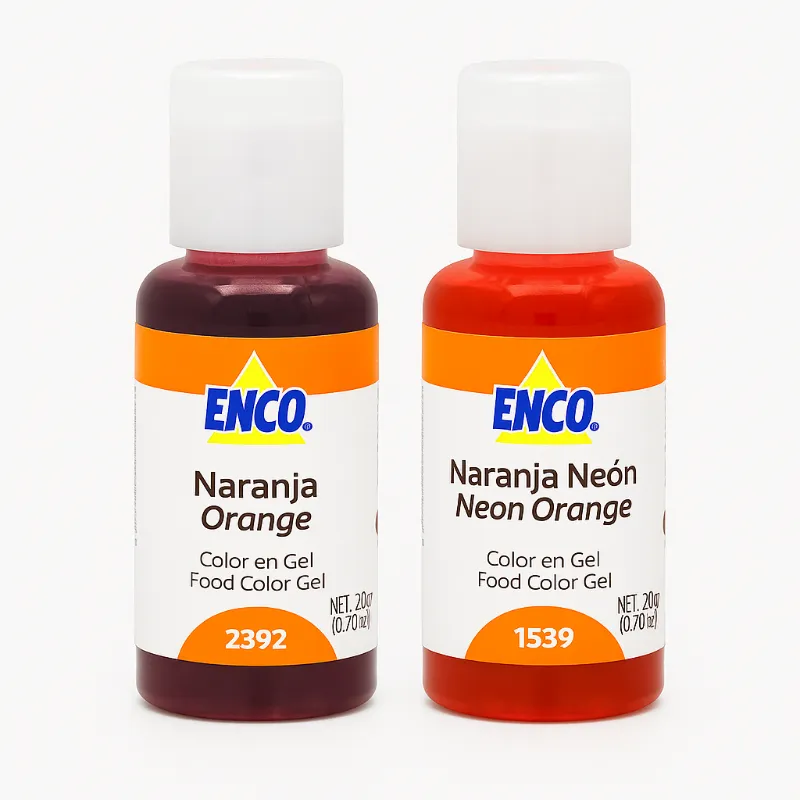 Los Colorantes En Gel Enco Gama Naranja 20g están elaborados con pigmentos de grado alimentario, seguros y de excelente calidad. Son ideales tanto para repostería profesional como para decoradores caseros que buscan acabados llamativos.