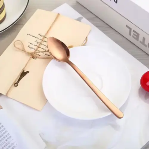 Transforma tus postres en obras de arte con nuestra cuchara Rose Gold. No es solo un utensilio, es una joya para tu cocina que añade un toque de sofisticación a cada creación dulce. Perfecta para el repostero que valora tanto la funcionalidad como la estética.