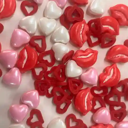 Sprinkles Comestibles Besos, dulces comestibles ideales para dar un toque único a tus recetas en el mes del amor y la amistad, perfecto para la decoración de tus tortas y postres favoritos.